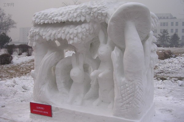 很独特的立意 皑皑的白雪雕琢出一个生机盎然的春尤其是小兔子 憨态可掬的样子很是可爱