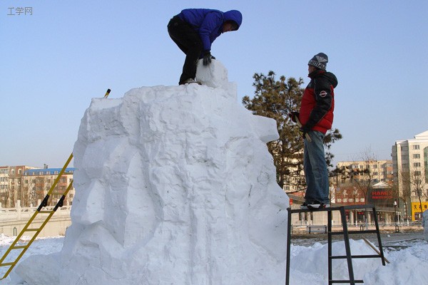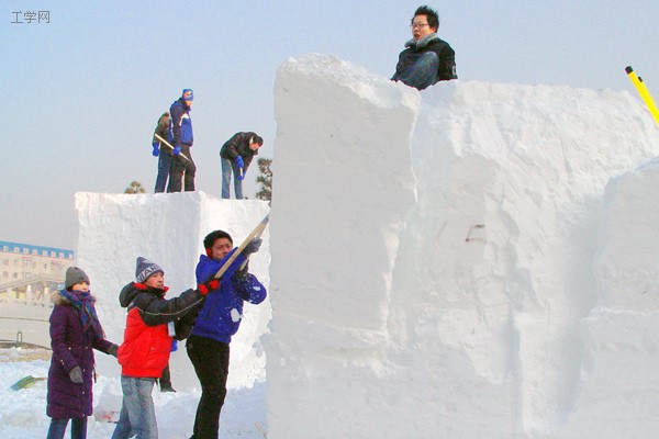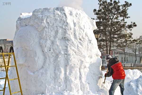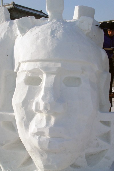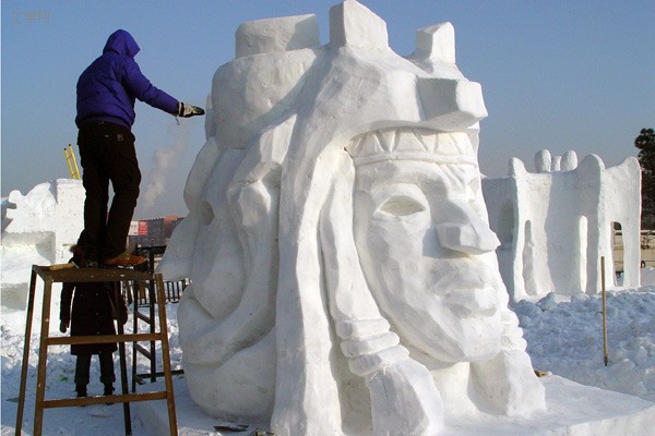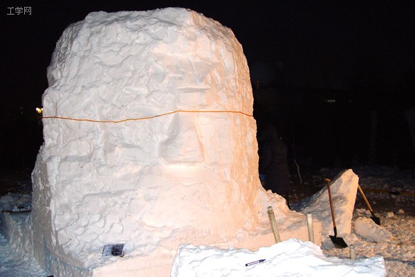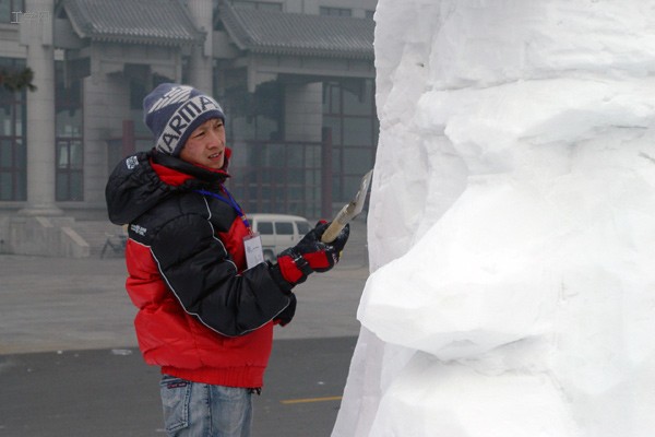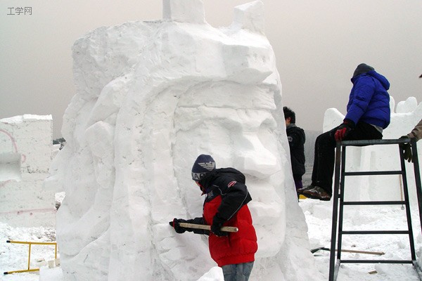 经过三天半在雪堆上的辛勤耕耘,来自天津科技大学参赛团队完成了他们作品“文明”。此雪雕以美洲、非洲、中国面具为创作元素,意在表达不同文明的交流与融合。下面的一组图片见证了“文明”的演变。