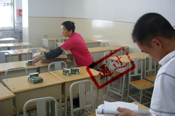 保洁阿姨在中厅自习室为新生分发钥匙,这个自习室通宵给电