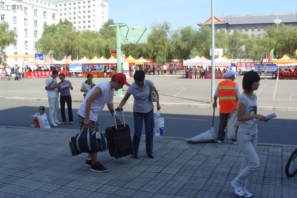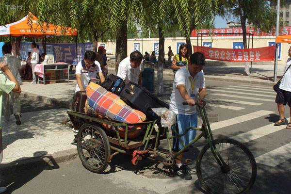他们不辞辛苦把新生的行李送往寝室