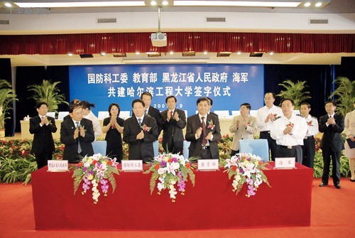 国防科工委、教育部、黑龙江省、海军共建我校协议正式签署。这是四方支持我校创建特色鲜明的高水平研究型大学的一个重要战略举措,是我校发展进程中的一个重大标志性成果,是学校在实现第二次党代会确定的“三步走”战略目标道路上的一个重要里程碑。