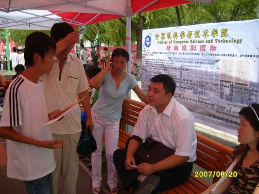 计算机科学与技术学院07级辅导员正在认真回答学生家长提出的问题,解答他们的疑惑。