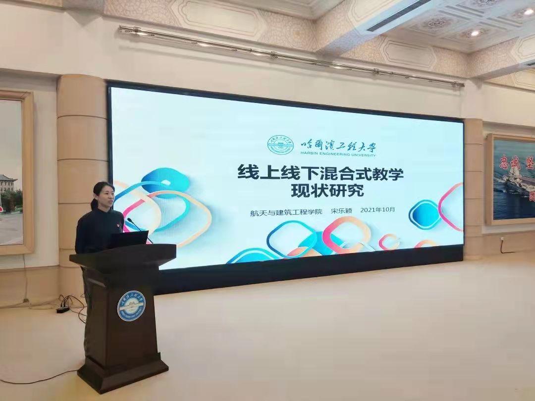 宋乐颖老师在作《线上线下混合式教学现状研究》情况汇报