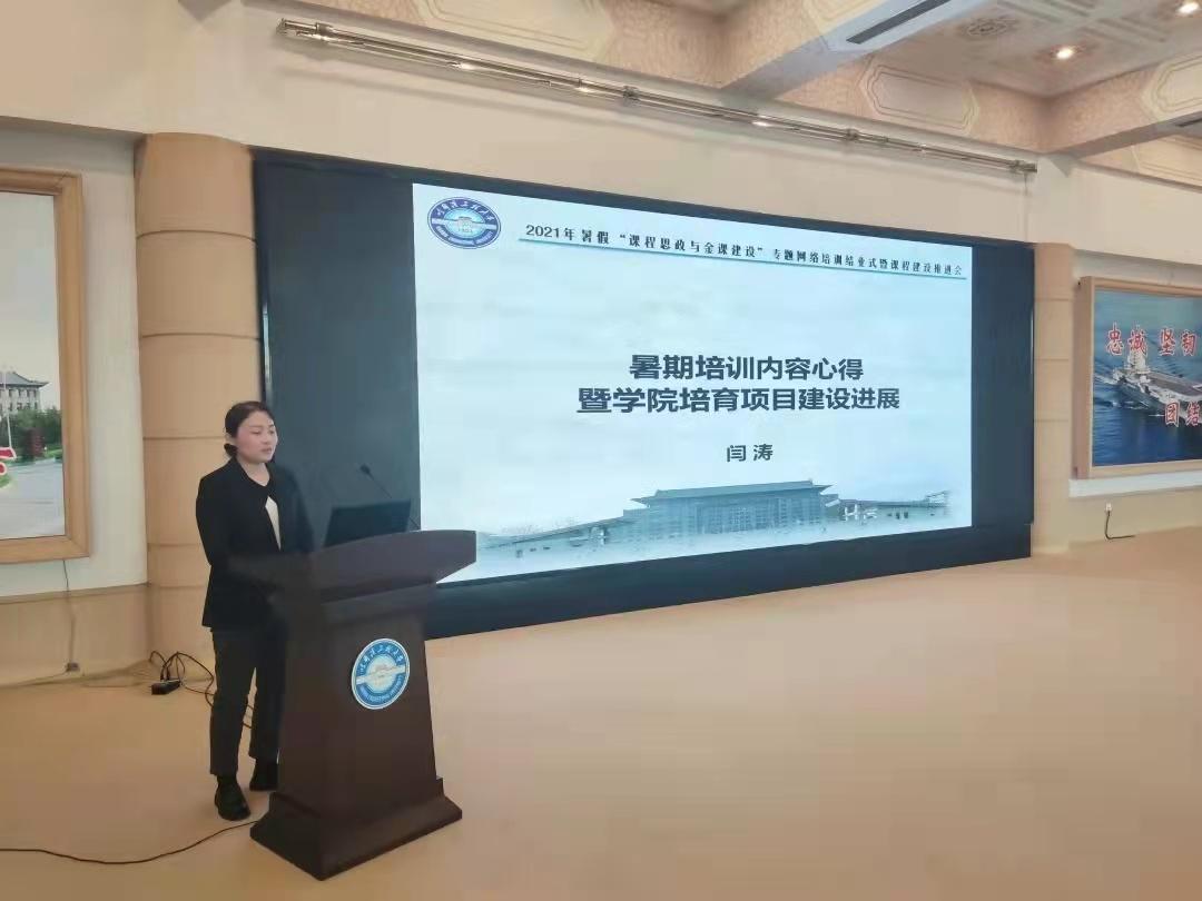随后,由张小彬、李树声、闫涛、何晓、宋乐颖五位骨干教师代表进行了课程思政及一流课程建设的主题发言,他们结合暑期学习培训收获,将课程思政建设、一流课程建设及信息化教学能力等方面的学习成果应用到具体课程建设上来,对学院一流课程及高水平教材培训项目建设推进情况,进行了经验交流分享。