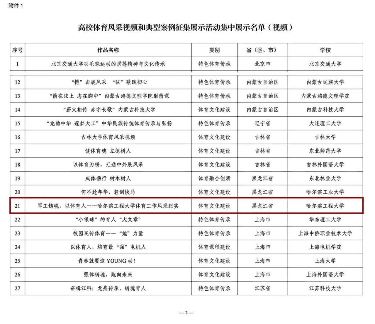 近日,教育部宣传教育中心在教育部体育卫生与艺术教育司、教育部全国高等学校体育教学指导委员会的指导下,组织开展的主题为“青春跃动、体育强国”高校体育风采视频和典型案例征集展示活动进入集中展示阶段。经省级推荐和专家评审,对全国50个典型案例、100个视频作品进行集中展示。我校报送的典型案例和视频从众多参选作品中脱颖而出双双入围集中展示,在“人民网+”客户端、人民日报少年客户端等官方主流媒体平台进行展播。
