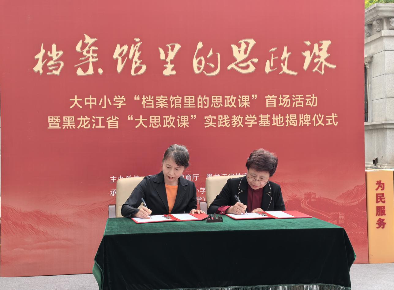 课前,黑龙江省档案馆举行黑龙江省“大思政课”实践教学基地揭牌仪式。学校与省档案馆签订结对协议。通过结对合作,双方将携手讲好讲活“档案馆里的思政课”,让档案资源真正变为可触可感的生动教材,让档案馆成为思政教学、研学实践的开放课堂,推动黑龙江优质档案资源走进大中小学,让更多青少年了解黑龙江历史文化、红色档案文化,教育引导他们了解历史真相、厚植爱国情怀、赓续红色血脉、勇担时代使命。