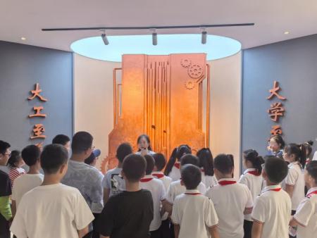 在工程文化展厅内,百余名中小学生开启了一场“穿越之旅”。工程认知与综合创新党支部书记周莹老师带领硕博研究生吴浩天、杜雨明以船舶工业、海洋装备为主线,通过图文互动、装备展示生动诠释我国船舶工业从跟跑到领跑的跨越式发展。当看到哈工程自主研发的“悟空号”全海深AUV模型与深入马里亚纳海沟万米深蓝采集海水的万米采水器样机同台展示时,来自工大附小的靳楚淇高兴的说道“刚刚展示的‘奋斗者’号载人潜器、‘悟空号’无人潜器,让我认识到要用科技发展实现海洋强国,那也将是我们的舞台,我要努力学习!”