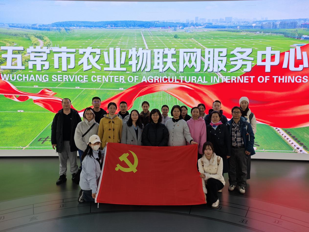 党支部前往五常市农业物联网服务中心。指挥大屏上实时滚动的电商数据、遍布全市的公共服务站点与直播间,以及基于区块链技术的“一袋一码”全程溯源体系,让党员师生深刻领略了数字党建引领智慧农业发展的前沿实践,对党的二十届四中全会强调的“推动农村基本具备现代生活条件,加快建设农业强国”有了更深刻的体会,是对“藏粮于地、藏粮于技”战略的生动诠释。