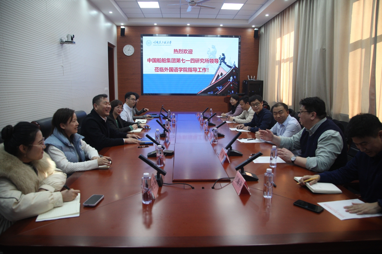 3月11日,中国船舶集团七一四研究所所长助理苏强、科技发展部副主任于宪钊、组织人事部主任王楠等一行7人赴外国语学院调研交流。双方围绕深化全面合作、推动学科交叉融合、服务国家战略需求等议题展开座谈。外国语学院党委书记吴越,院长朱殿勇,院长助理李丽及区域国别研究中心骨干教师参加座谈。