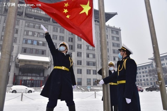 中新网黑龙江新闻3月2日电(金声 栗浩)2日是哈尔滨工程大学2020新学期开学的日子。7时,空旷的校园响起国歌和校歌,国防教育学院院长张阳红带领教师于凡、王东辉迈着整齐的步伐来到白雪覆盖的广场,在雄壮的国歌声中为全校师生升起了五星红旗。