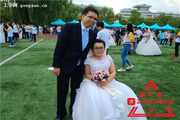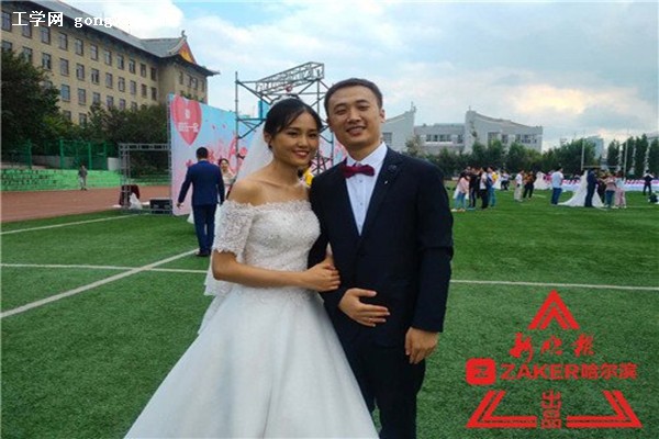 2015 级在读博士王艺鹏和 2014 级硕士张谕都是哈尔滨工程大学的学生,今年要结婚的两人,也特意参加了校庆集体婚礼。" 我们班的男生有 20 人,女生 10 个人。因为都习惯吃面,我俩经常一起去吃饭,我经常帮她讲题,性格也很合拍。2012 年 11 月 11 日光棍节,我俩决定在那天脱单,于是就走到了一起。" 王艺鹏说。