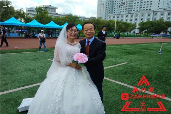 婚礼现场,一对身穿结婚礼服的中年夫妻引起记者注意。丈夫王东辉告诉新晚报记者,1995 年,他毕业于哈尔滨工程大学人文与社会学院。今年,得知母校在校庆时要举办集体婚礼,他早早地跟爱人商量回学校参加这个活动。" 我们是 1998 年结婚,今年正好是 20 周年结婚纪念日。毕业以后我和爱人在天津工作,虽然她不是哈工程毕业的,但这么多年,一直支持我参加校友会的活动,也算是半个哈工程人。哈工程是我的第二故乡,我爱人之前还没有来过,所以我们特意在 8 月 30 日提前回到哈尔滨,带她到哈尔滨中央大街、防洪纪念塔等地走一走。这么多年,哈尔滨变得越来越美,学校建设也越来越好。" 王东辉说 " 在哈尔滨的四年大学生活,对我影响很大,学校务实、守信的教育,也让我收益很大 "。