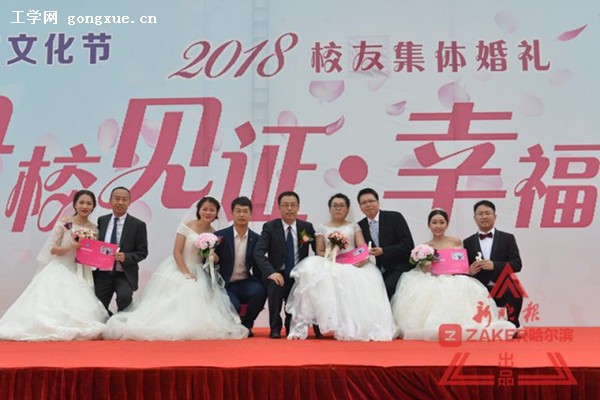 1 日,是哈尔滨工程大学 65 周年校庆。当天,来自各地的校友回到学校举办校友文化节为母校庆生的同时,32 对校友还在母校生日当天,举办了一场浪漫的集体婚礼。