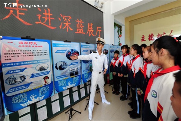 学生们参观走进深蓝展厅,聆听国防生大哥哥的讲解
