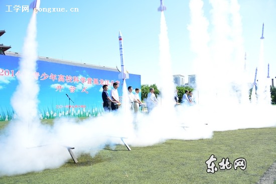 东北网教育消息 (唐晓伟 记者 杨潇) 十架一飞冲天的火箭模型、凌空而起的固定翼航空模型、从天空缓缓而降的降落伞条幅……伴随来自全国近500名高中师生的赞叹,2014年青少年高校科学营黑龙江分营7月14日在哈尔滨工程大学军工操场隆重开营。