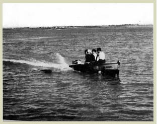 上世纪50年代,工作人员在呼兰河上进行水翼艇试验。