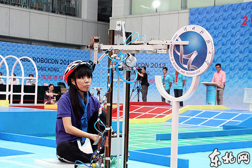 参赛队员在完成设定得分环节。东北网记者王蕊摄