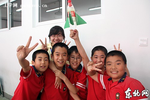 南岗小学的学生们制作完成了“水火箭”。东北网记者 王蕊 摄