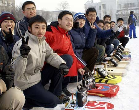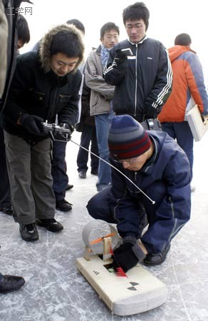 当日,哈尔滨工程大学举办遥控雪橇大赛,31组100多名学生参赛。比赛所用遥控雪橇全部为学生自制。