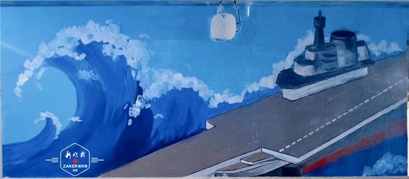 机电工程学院党委副书记侯磊介绍,得知学生的创意,学院全力支持同学们创作。绘制地点选择在学生第三公寓一楼走廊,共八面墙, 231 平方米可使用。选在三公寓绘制航母,可以让学生们热爱海洋、投身海防的志向点得更燃。