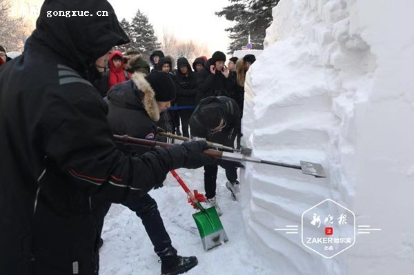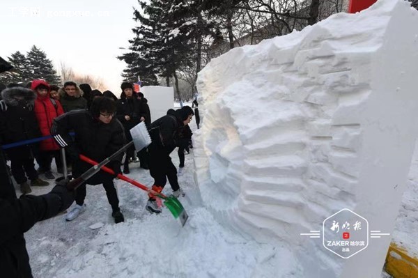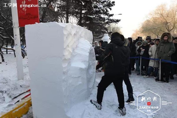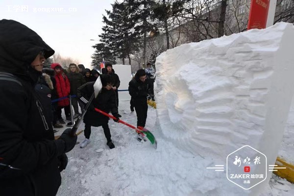 23日中午,哈尔滨工程大学举办的第十三届"雪兆工程展北国风采,精雕细琢铸锦绣未来"校园雪雕大赛开铲。