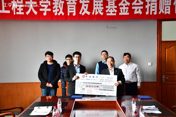 3月9日,哈尔滨学泰教育科技有限公司向哈尔滨工程大学教育发展基金会捐赠仪式在学校主楼举行。2011级校友、哈尔滨学泰教育科技有限公司总经理杨春波,2012级校友、哈尔滨学泰教育科技有限公司技术总监陈捷,2014级研究生校友、哈尔滨学泰教育科技有限公司教学总监吕绍平,共同为学校捐赠50万元,用于设立“丁牛学生资助基金”,以帮助学校家庭经济困难学生及支持学生创业。副校长、教育发展基金会常务副理事长张志俭出席仪式。