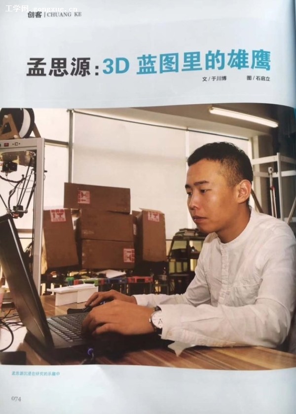 《科技日报》第六版头题以《孟思源:自研3D打印机,“打印”炫彩青春》为题进行报道。