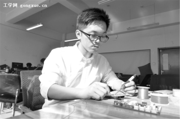 当初刚上大一的康晓啸,在学校科创氛围下爱上了创新,除了上课,他几乎整日整夜泡在实验室,从流水灯到抢答器,从小制作到主持多个国家级创新训练计划,他吃饭走路,无时无刻不在琢磨。老师们都觉得活儿交给他最靠谱。大一暑假的全国电子设计竞赛,他带领团队一头扎进37摄氏度的实验室,三天休息不到10个小时完成了作品,最终获得赛区一等奖。