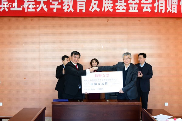 12月8日,77-611班校友、北京东西分析仪器有限公司总经理李晓鸥向哈尔滨工程大学教育发展基金会捐赠仪式在主楼会议室举行。校党委副书记夏桂华出席仪式。