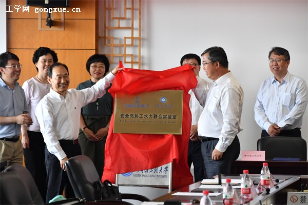 张志俭与李定成共同为中国核电工程有限公司与学校共建安全壳热工水力联合实验室揭牌,该实验室是双方在“华龙一号”非能动安全壳热量导出系统合作研发的基础上,为进一步深化和拓展相关研究而设立的。