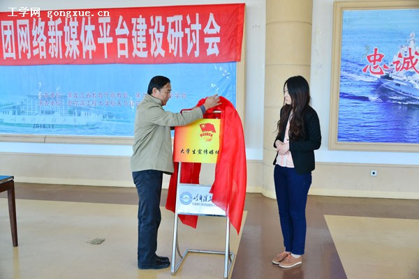 共青团网络新媒体平台建设研讨会16日在启航活动中心教师沙龙召开,校“大学生宣传媒体中心”正式成立。校党委副书记、副校长魏潾出席会议并为中心揭牌。