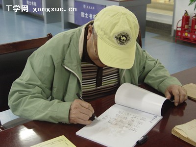 随后,汪浩应邀在校友文库留言簿上题词。他先是毫不犹豫地写下了“睹物生情”4个字,思考一下后又陆续写出了“忆思历史 承前启后 开拓前进”12个字。这是哈军工老校友对后来人的期盼,也是对母校校庆60周年的祝福。铿锵有力的字把老校友的足迹留下,也带走了记忆。