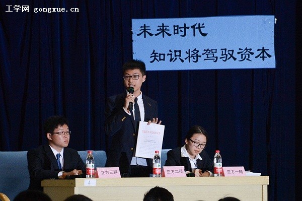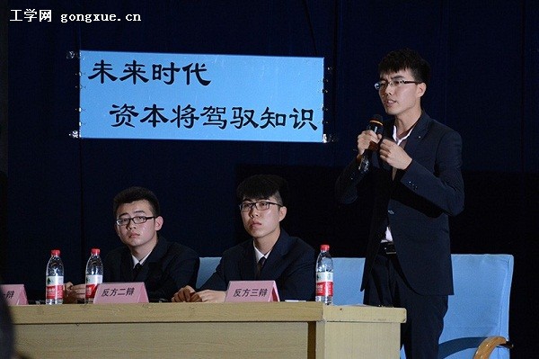 此次闯进决赛的队伍是来自船舶学院的正方代表队“船舶B队”和来自机电学院的反方代表队“机电A队”,双方就“未来时代,知识与资本谁将驾驭谁”展开激烈交锋。双方各辩手出口成章,你来我往,不断为己方观点添理加据。理论反驳环节中,正方反复谈及辩题中“驾驭”一词,以人驾驭马类比拟人所接受知识的不断更新能够驾驭资本,语言机智活泼,而反方则以“知识并非主观意识,资本是动力”的论点进行阐释。质询小结环节中,双方就知识与资本的关系展开一场唇枪舌战。在评委点评时,嘉宾赵岩老师指出,辩论双方激情满满但均未对对手所提出的问题进行正面回答,双方并未真正了解未来时代具有的特征,对辩题中“知识”、“资本”含义涉及不全不深,一场辩论赛应给予观众启迪思想的过程,打破二元对立的场面,让观众多一条思路,多一种思维方式。