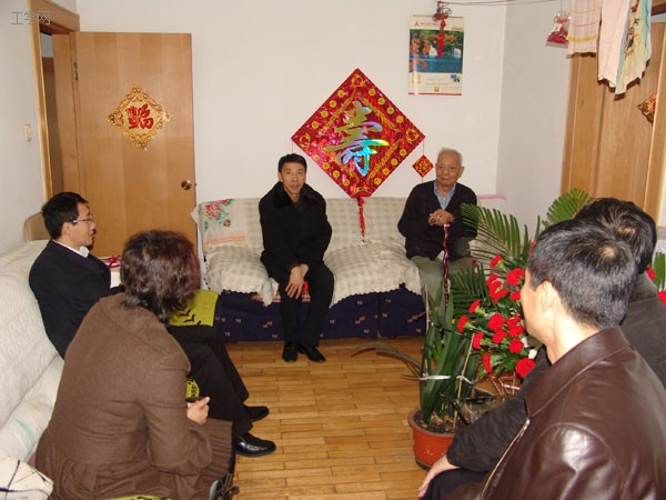 谷焕民代表校党委祝老人健康长寿,提及左老是当年“风洞”建设的功臣。左老看到校领导带来的生日蛋糕、花篮等时说:“感谢校领导在百忙之中来看我,感谢校党委和离退休处对我多年来的关心和照顾。”吴庆文拉着左老的手,关切地询问生活情况、起居照料等情况。