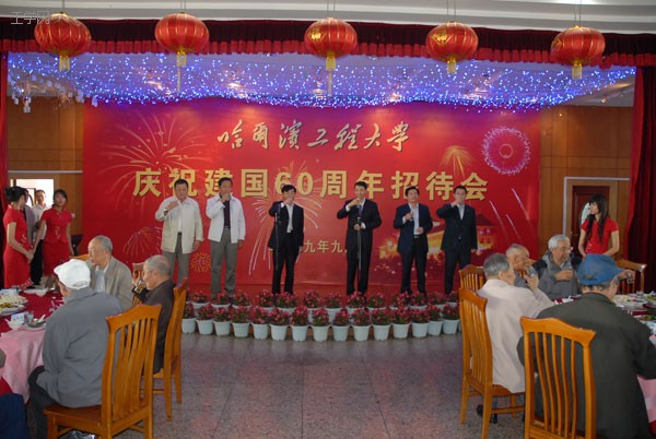 招待会由校长刘志刚主持。他邀请老同志们共同举杯,祝贺祖国60岁生日。