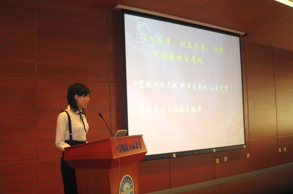 演讲中,辅导员们围绕自己对科学发展观的认识,结合自身成长和工作实际,有娓娓道来的感人事迹,也有充满理性的深度思考,有观点新颖的真知灼见,也有勇于奋进的激情干劲,现场的优异表现赢得了观众的热烈掌声。