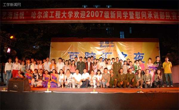 由校团委、大学生军训团主办,校大学生艺术团、校学生会承办的欢迎2007级新同学暨慰问承训部队官兵文艺晚会“艺海扬帆”6日晚在南体育场举行。