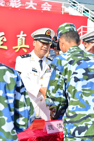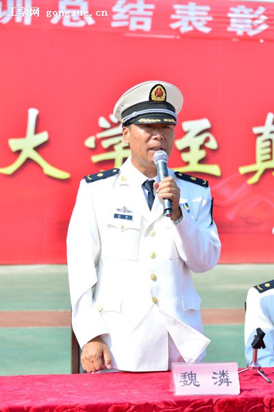 校党委副书记、副校长、军训团第一政委魏潾,海军驻我校选培办主任李汝亭上校,军训团副团长、65947部队带队首长孙先鹏中校,军训团参谋长、65923部队带队首长王洪生少校出席表彰大会。