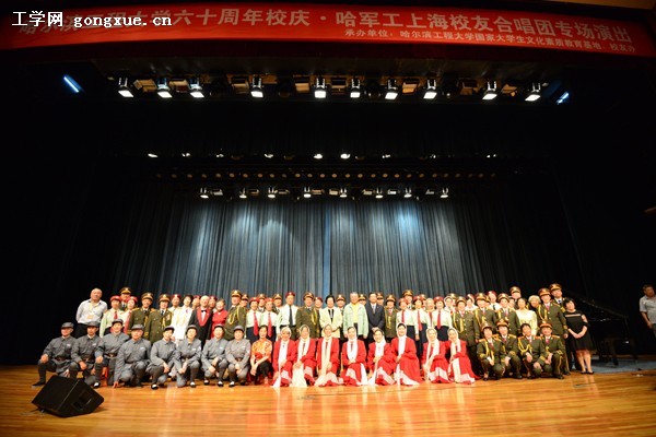 载歌载舞忆当年,满怀深情献母校。庆祝哈尔滨工程大学建校六十周年哈军工上海校友合唱团文艺演出30日晚在启航剧场举行。