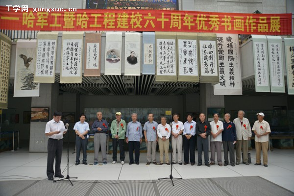 国防科技大学原政委汪浩,北京哈军工校友会副理事长尚法尊,黑龙江省军区老战士书画会荣誉会长、省军区原司令员唐作厚将军等省市军届书画名家、校友,离退休的老同志,各院系、部处领导和教职工书画爱好者等150余人参加开幕式。