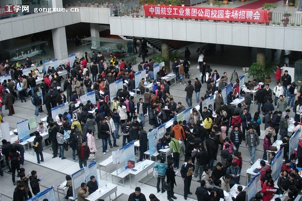大型企业集团的招聘会成为就业工作的重头戏,图为中航集团来校召开校园专场招聘会。