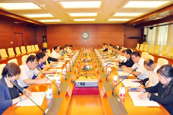 赵士刚致欢迎词并就学校基本情况进行介绍。双方就实验室与资产管理工作进行了交流。