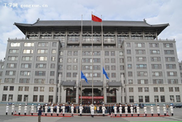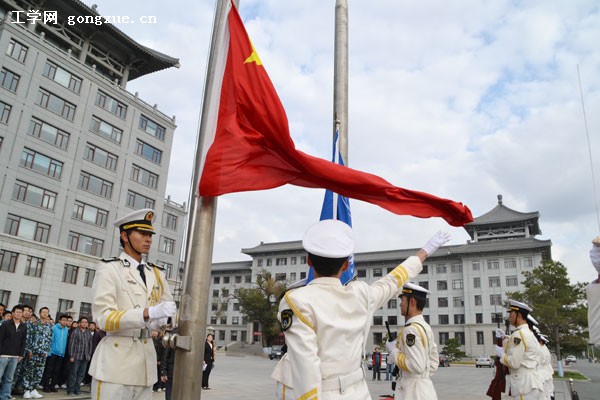 校党委副书记、副校长魏潾出席仪式。学生工作处、船舶学院、航建学院、信通学院、材化学院、外语系、人文学院、国际合作学院和国防学院有关负责人及学生代表一千余人参加了本次升旗仪式。