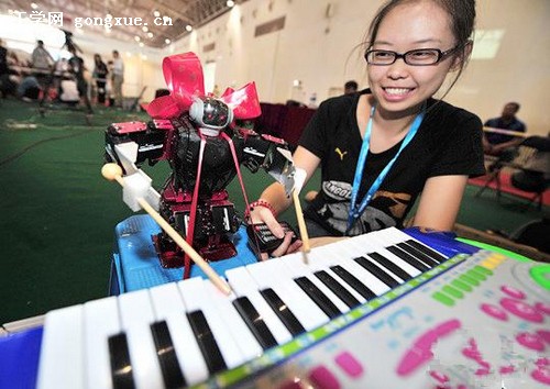 16日,我校学生孟林制作的弹奏电子钢琴机器人——花魁,在首届中国智能博览会上的仿人机器人奥林匹克邀请赛表演节目中,当场弹奏了《欢乐颂》、《彩云追月》、《天空之城》等乐曲,吸引了参加活动的中共中央委员、全国人大常委会副委员长、中国科学院院长、党组书记、两院院士路甬祥,中国工程院院长周济,全国人大前副委员长许嘉璐等领导驻足观看。