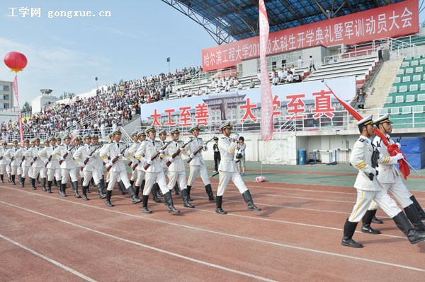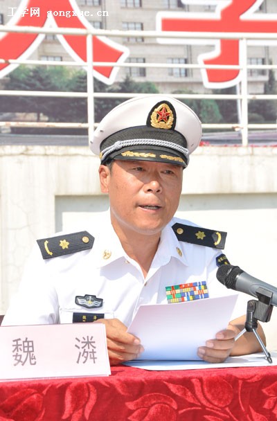 校领导谷焕民、刘志刚、高晚欣、魏潾、吴庆文、杨冶,校长助理董国强,中国工程院院士杨士莪,军训承训部队65444部队孙晓明少校出席典礼并在主席台就座。