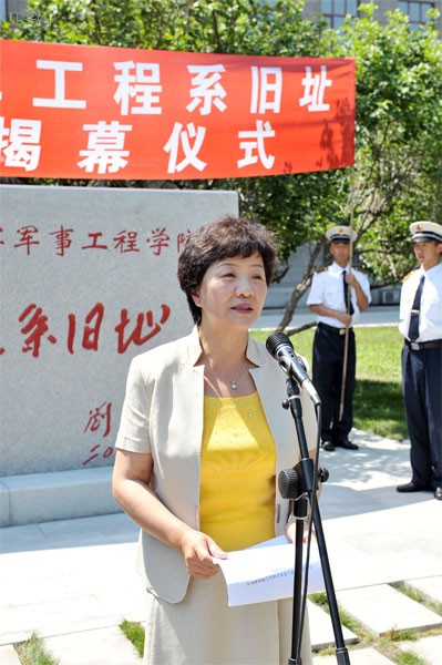 最后,陈小筑在仪式上讲话。她代表西工大向为建碑工作给予大力支持与帮助的我校和哈军工校友表示感谢。她说,哈军工先辈们终生不渝的报国精神、志存高远的拼搏精神、科学严谨的求学精神、敢为人先的创新精神为后继者不断传承,已经成为我们最宝贵的精神财富,影响着一代代的后来人。纪念碑的建立是为了铭记辉煌的历史,传承和弘扬前辈们艰苦奋斗的精神,激发广大师生和校友的爱国、爱校热情,纪念哈军工前辈们对党、革命事业的忠诚,报效祖国、服务人民、建设国防的献身精神,开拓创新、勇攀高峰的科学精神,和为国防科技培养军事工程高级人才的崇高使命。她说,我们既缅怀过去,更珍惜今天来之不易的发展机遇,希望哈工程与西工大师生共同弘扬哈军工精神,奋发努力、不断进取,不辜负前辈厚望,为服务工业化、信息化和国防现代化建设作出更大贡献。