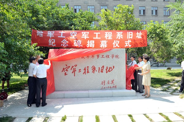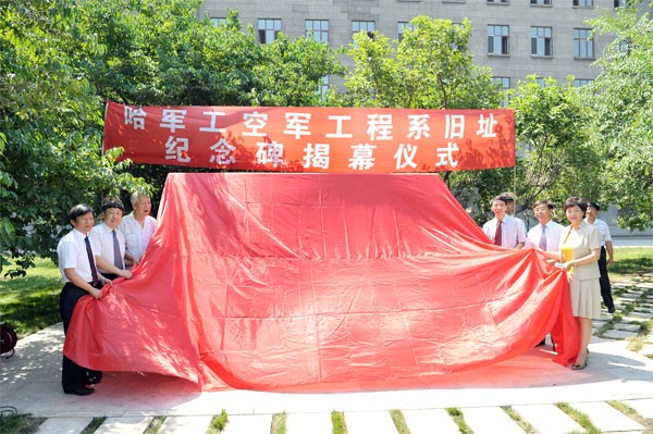 为纪念哈军工空军工程系西迁40周年,哈军工空军工程系旧址纪念碑26日上午在我校11号楼前正式落成并举行了隆重的揭幕仪式。