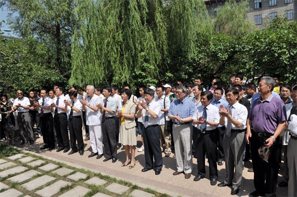 随后,陈小筑、姜澄宇、王树国、谷焕民、刘志刚、曹守裕共同为纪念碑揭幕。