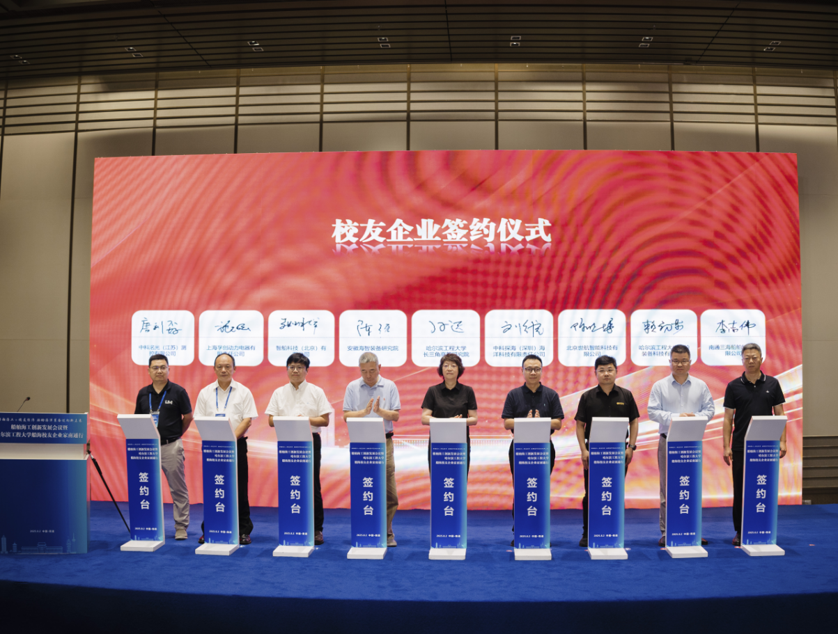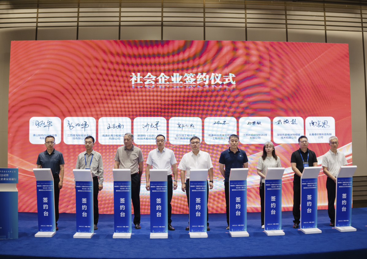 会上,8家校友企业和8家船海产业链主企业代表,分别与哈工程长三角高等研究院签订合作协议。南通海洋发展局、哈尔滨工程大学国家大学科技园分别就南通市海洋产业发展环境、哈工程船舶海工优势科技成果作汇报交流,哈工程长三角高等研究院负责人介绍了研究院的建设情况及发展展望。国家智能制造专家委员会副主任张相木作题为《中国制造2025和船舶工业未来》的主旨报告。