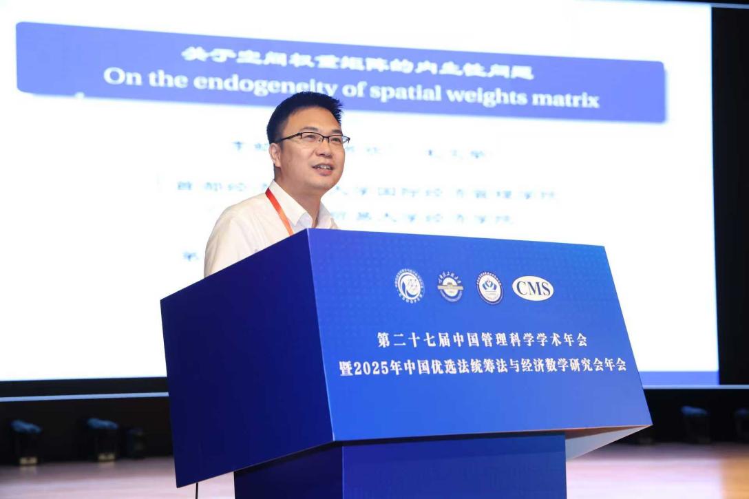 首都经济贸易大学党委常委、副校长李鲲鹏教授做题为《关于空间权重矩阵的内生性问题》的主题报告。报告聚焦空间计量领域的前沿核心问题,提出了三种创新性的增强方法,基于此开发了最大似然(QML)估计程序,通过详尽的蒙特卡罗模拟实验研究验证了所提估计量在有限样本下表现稳健可靠,为实际应用提供有力支撑。